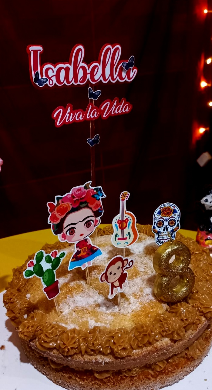 Fim do dia. Vizinhança amiga chega. Comemos e bebemos guloseimas pecaminosas, papeamos e, eis que de repente, não é que Frida Kalho resolve descer dos planos celestiais e visitar a menina Isabella?