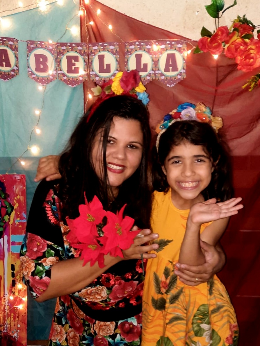 Recebo um abraço gostoso. Obrigada a minha amiga Edimaria pelo empréstimo do seu vibrante figurino para fortalecer a performance de uma mãe à plateia mais importante dela. E é chegada a hora dos parabéns!